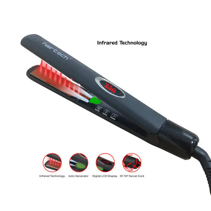 Η επαγγελματική Πρέσα μαλλιών Hairtech με Υπέρυθρες Ακτίνες ,Κεραμικές Πλάκες και Ιονιστή είναι το κατάλληλο εργαλείο για επαγγελματίες αλλα και ιδιώτες.